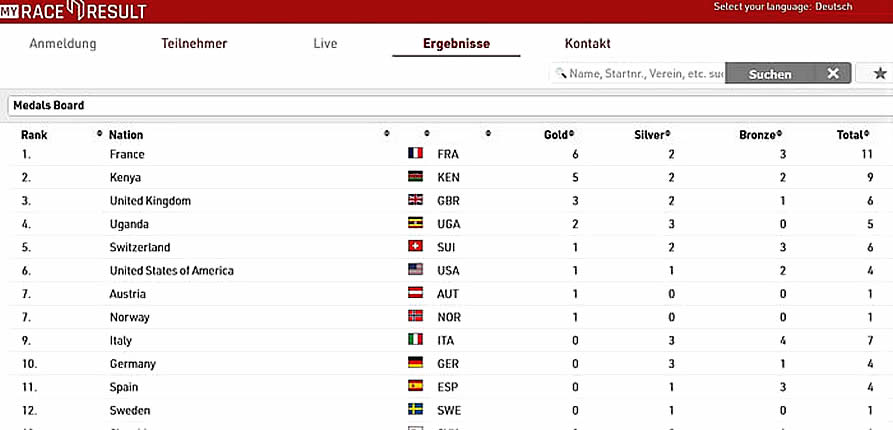 Die Berglaufnation Italien blieb ebenso ohne Gold hat 7 Medaillen erkämpft und liegt nur ein Platz vor Deutschland. |